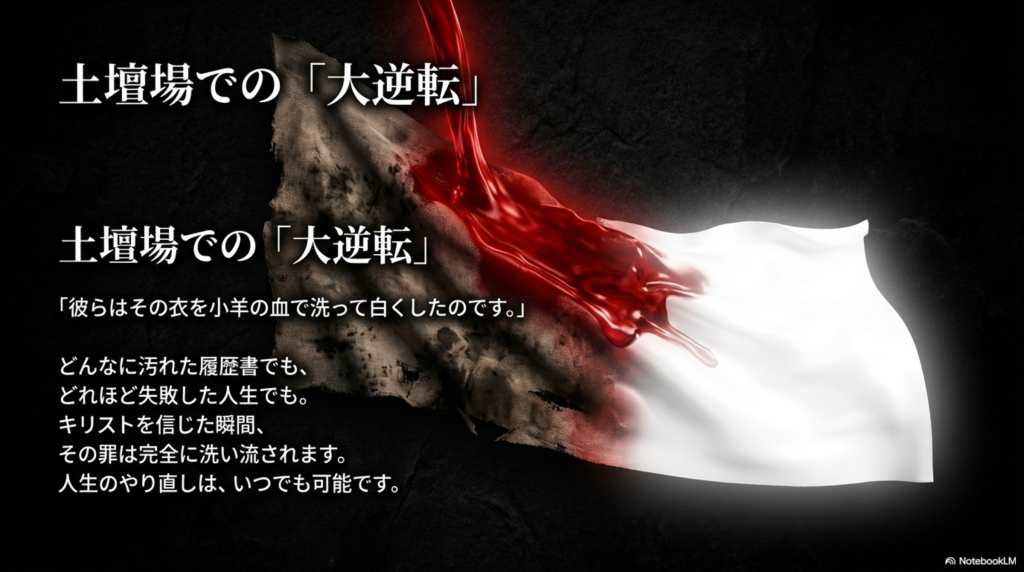 「今まで自分勝手に生きてきたけれど、あなたが必要です」と決断した人々を、神様は真っ白に洗い清めてくださるのです。