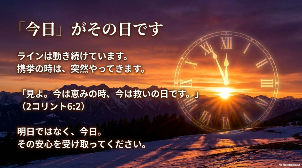 どうか、今日ここにいるすべての人が、携挙の前に、イエス・キリストを信じる決断ができますように。