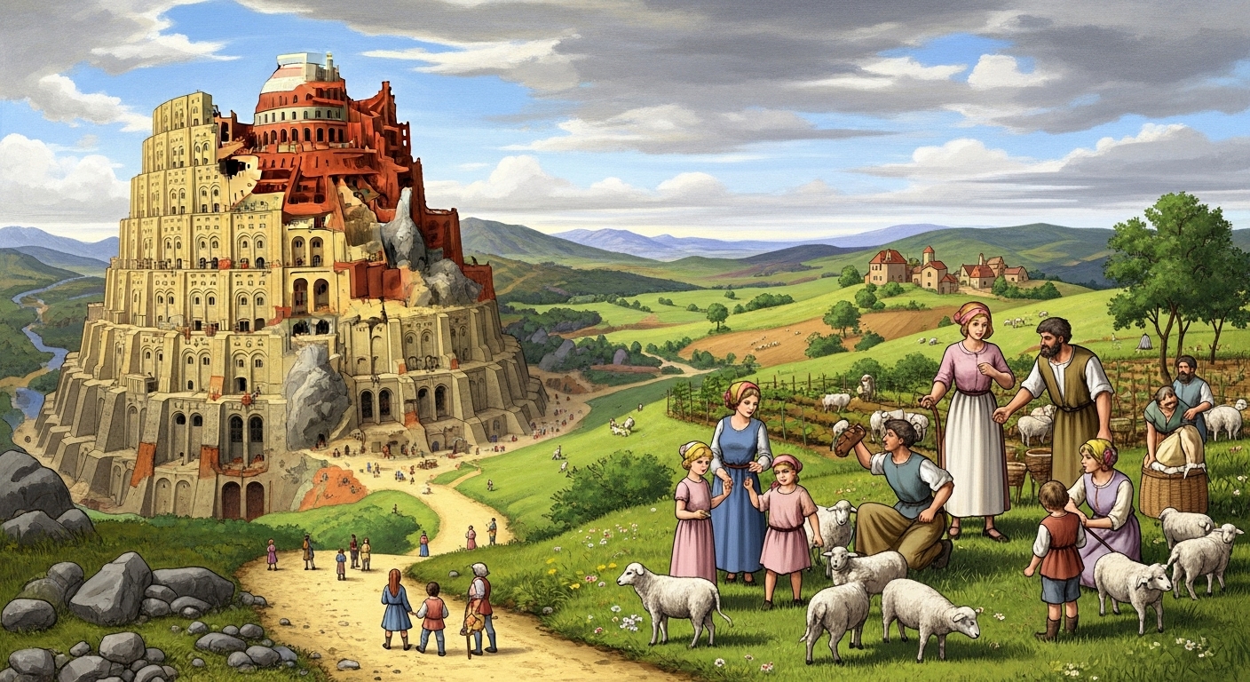 ・バベルでは、人間の努力が混乱と分裂を生んだ