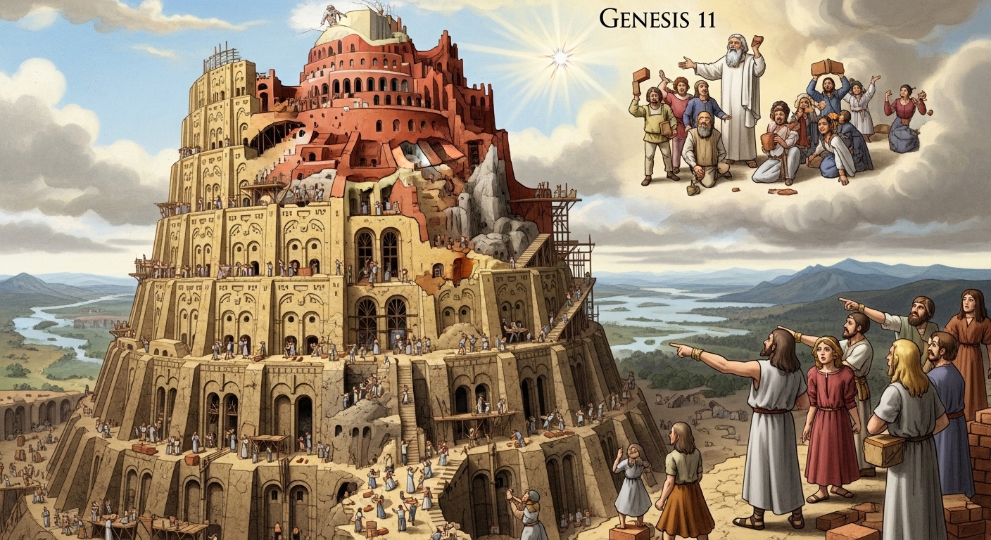 Human arrogance and God’s judgment. The confusion of language and the scattering of humanity.
