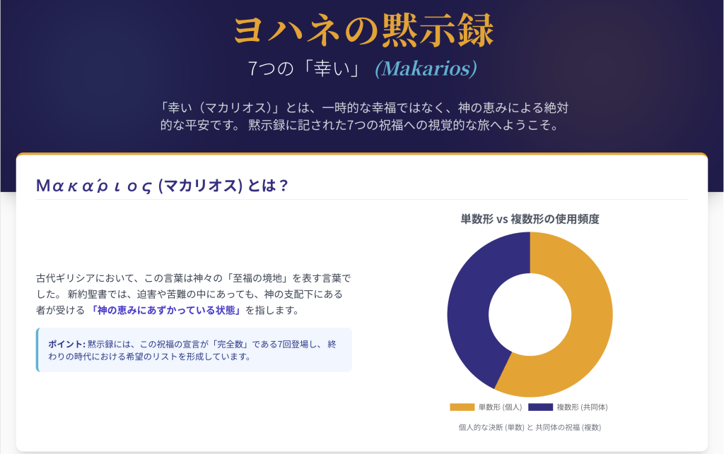 黙示録は「裁きの書」と思われがちですが、この μακάριος(マカリオス) が7回も繰り返されていることに注目すると、