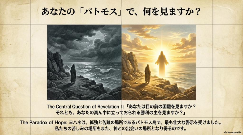 パトモス島という孤独と苦難の場所で、ヨハネは最も壮大な啓示を受けました。