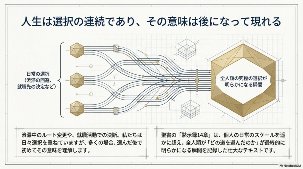 「黙示録って、結局何が書いてあるの?」そう思ったことはありませんか?怖い、難しい、宗教の話。そんなイメージを持たれがちな黙示録ですが、14章には、現代を生きる私たちへの、驚くほどシンプルなメッセージが込められています。この記事では、黙示録14章を以下の流れで解説します。