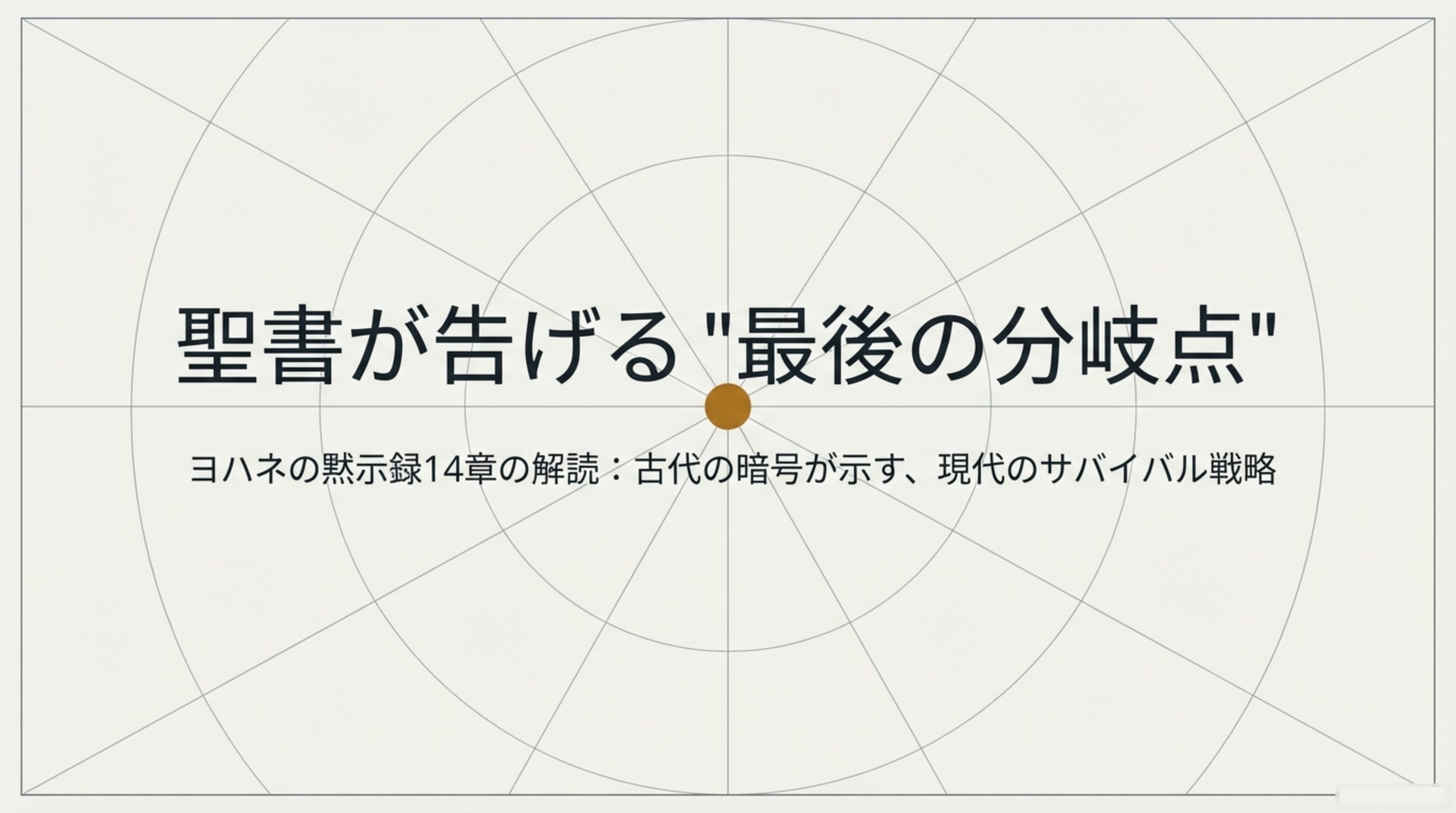 「黙示録って、結局何が書いてあるの?」そう思ったことはありませんか?怖い、難しい、宗教の話。そんなイメージを持たれがちな黙示録ですが、14章には、現代を生きる私たちへの、驚くほどシンプルなメッセージが込められています。この記事では、黙示録14章を以下の流れで解説します。